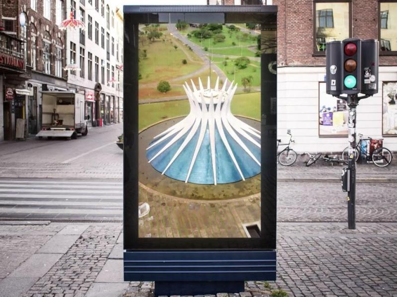 Com o painel de LED outdoor d...