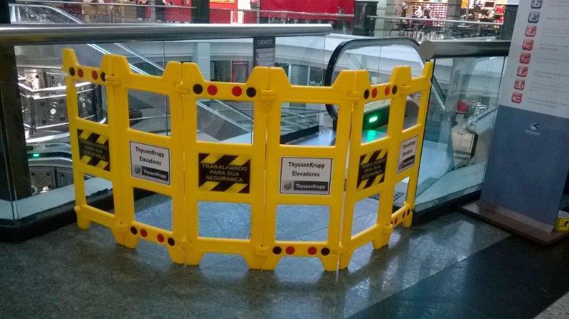 A placa de sinalização tem como função informar, advertir para evitar acidentes e restringir determinada área. Tem seus dizeres na cor preta e nos idiomas Português e Inglês e a simbologia é na cor vermelha.